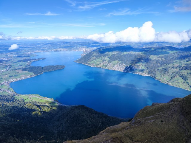 Café au FerienHof avec la copine Mila. Visite et balades au bords du lac des 4 cantons vers Altdorf et départ pour la nuit vers Seeberg. Belle vue plongeante sur le lac.